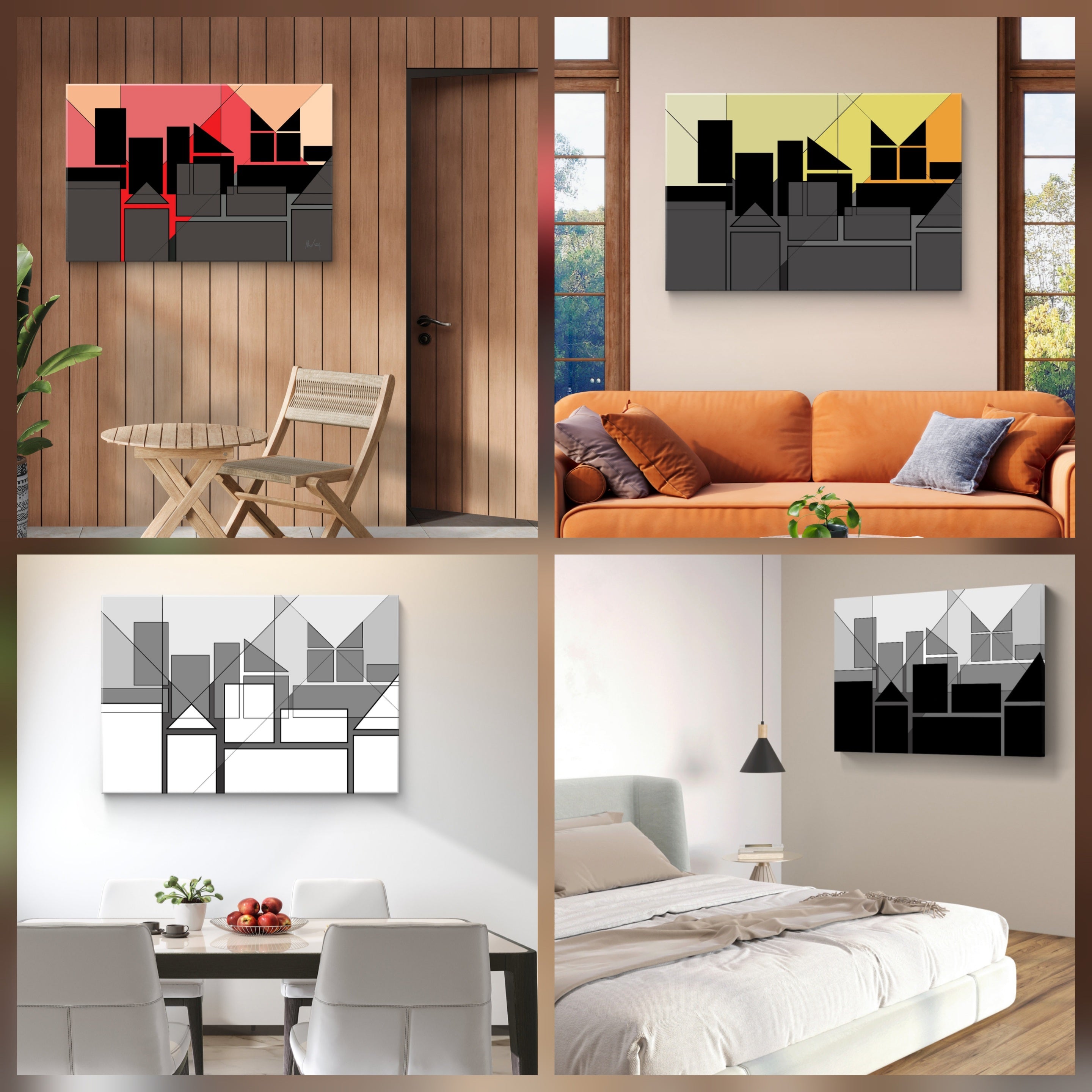 The art is inspired by global architecture and cities, and the universal geometry, lines, and shapes of cities. The works are designed to function together to support layered interiors, architectural experience and interior composition. Free shipping in Australia, USA and Europe for most of the works (check catalogue).
