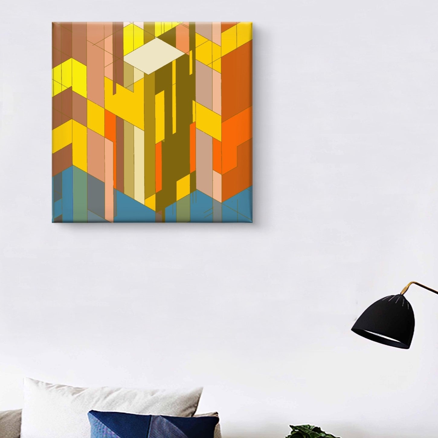 A vibrant and abstract urban art piece that exudes a sense of complexity yet unity with its variety of colors and planes. With others in the "Urban-square" group they are ideal for creative and cohesive interior decor. Ideal for art enthusiasts and home decorators looking to add a unique touch to their space.